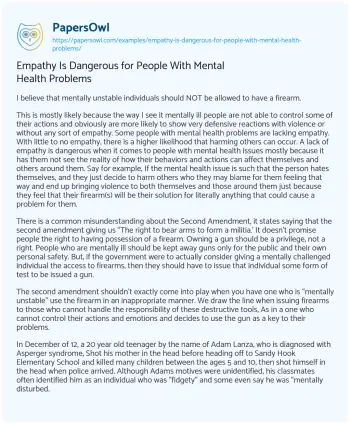 This is most likely because, the way I see it, mentally ill people are not able to control some of their actions and are more likely to show very defensive reactions, with or without any sort of empathy. Some people with mental health problems lack empathy. With little to no empathy, there is a higher likelihood that harming others can occur. A lack of empathy is dangerous when it comes to people with mental health issues, mostly because it blinds them to the reality of how their behaviors and actions can affect themselves and others around them.
