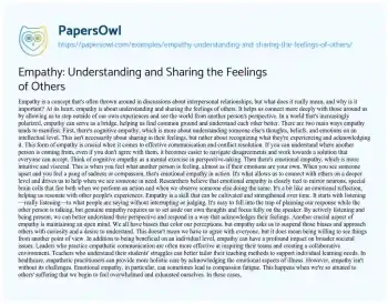 Empathy: Understanding and Sharing the Feelings of Others. (2024, May 21). Retrieved from https://hub.papersowl.com/examples/empathy-understanding-and-sharing-the-feelings-of-others/