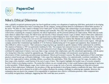 Nike's Ethical Dilemma. (2021, May 17). Retrieved from https://hub.papersowl.com/examples/employing-child-labor-of-nike-company/