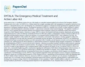 EMTALA: The Emergency Medical Treatment and Active Labor Act. (2024, May 28). Retrieved from https://hub.papersowl.com/examples/emtala-the-emergency-medical-treatment-and-active-labor-act/