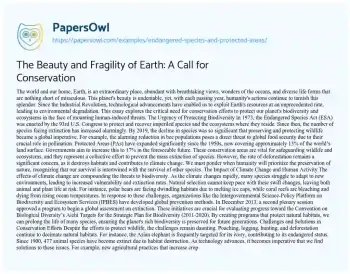 The Beauty and Fragility of Earth: A Call for Conservation. (2021, Jun 01). Retrieved from https://hub.papersowl.com/examples/endangered-species-and-protected-areas/