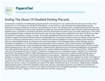 Ending The Abuse Of Disabled Parking Placards. (2024, Apr 07). Retrieved from https://hub.papersowl.com/examples/ending-the-abuse-of-disabled-parking-placards/