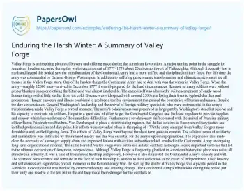 Enduring the Harsh Winter: A Summary of Valley Forge. (2024, Jul 06). Retrieved from https://hub.papersowl.com/examples/enduring-the-harsh-winter-a-summary-of-valley-forge/