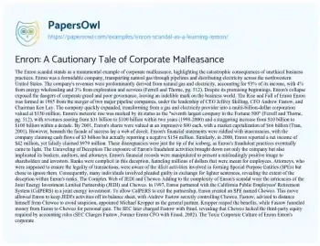 Enron: A Cautionary Tale of Corporate Malfeasance. (2019, Oct 10). Retrieved from https://hub.papersowl.com/examples/enron-scandal-as-a-learning-lesson/