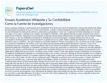 Ensayo Academico Wikipedia y Su Confiabilidad Como la Fuente de Investigaciones. (2026, Feb 06). Retrieved from https://hub.papersowl.com/examples/ensayo-academico-wikipedia-y-su-confiabilidad-como-la-fuente-de-investigaciones/