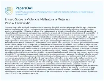 Ensayo Sobre la Violencia: Maltrato a la Mujer un Paso al Feminicidio. (2026, Feb 06). Retrieved from https://hub.papersowl.com/examples/ensayo-sobre-la-violencia-maltrato-a-la-mujer-un-paso-al-feminicidio/
