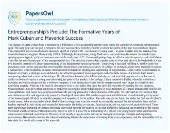 Entrepreneurship’s Prelude: The Formative Years of Mark Cuban and Maverick Success