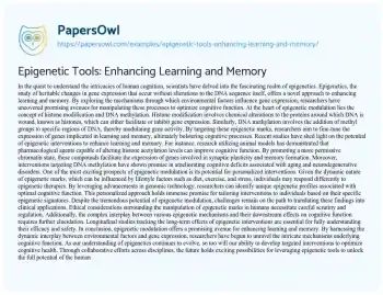 Epigenetic Tools: Enhancing Learning and Memory. (2024, Mar 02). Retrieved from https://hub.papersowl.com/examples/epigenetic-tools-enhancing-learning-and-memory/