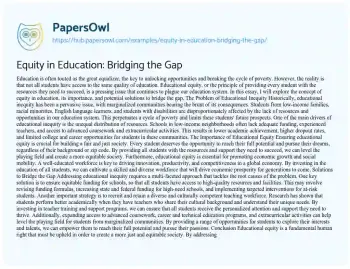 Equity in Education: Bridging the Gap. (2025, Nov 06). Retrieved from https://hub.papersowl.com/examples/equity-in-education-bridging-the-gap/