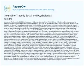 Columbine Tragedy Social and Psychological Factors. (2021, Aug 05). Retrieved from https://hub.papersowl.com/examples/eric-harris-school-shooting/
