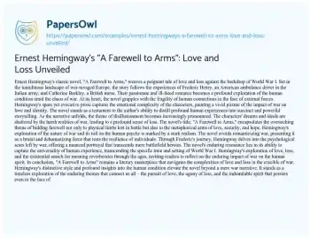 Ernest Hemingway's "A Farewell to Arms": Love and Loss Unveiled. (2024, Feb 01). Retrieved from https://hub.papersowl.com/examples/ernest-hemingways-a-farewell-to-arms-love-and-loss-unveiled/