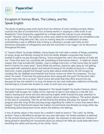 Escapism in Sonnys Blues, The Lottery, and No Speak English