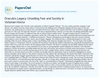Dracula's Legacy: Unveiling Fear and Society in Victorian Horror. (2021, Jun 26). Retrieved from https://hub.papersowl.com/examples/essay-about-novel-dracula-by-bram-stoker/