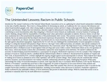 The Unintended Lessons: Racism in Public Schools. (2021, Oct 15). Retrieved from https://hub.papersowl.com/examples/essay-about-venue-description/