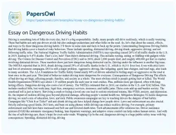 Essay on Dangerous Driving Habits