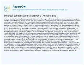 Ethereal Echoes: Edgar Allan Poe's "Annabel Lee". (2024, Mar 25). Retrieved from https://hub.papersowl.com/examples/ethereal-echoes-edgar-allan-poes-annabel-lee/