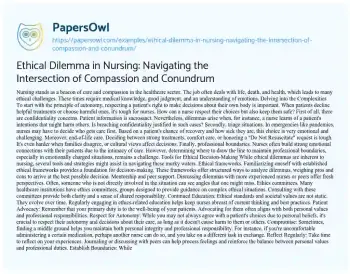 Ethical Dilemma in Nursing: Navigating the Intersection of Compassion and Conundrum. (2023, Sep 14). Retrieved from https://hub.papersowl.com/examples/ethical-dilemma-in-nursing-navigating-the-intersection-of-compassion-and-conundrum/