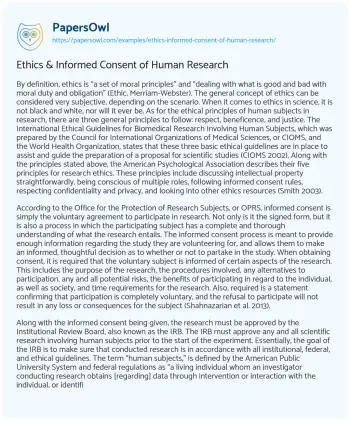 Ethics & Informed Consent of Human Research. (2021, Jun 16). Retrieved from https://hub.papersowl.com/examples/ethics-informed-consent-of-human-research/
