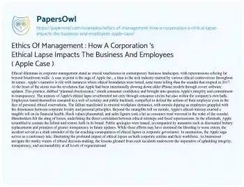 Ethics Of Management : How A Corporation 's Ethical Lapse Impacts The Business And Employees ( Apple Case ). (2024, Apr 22). Retrieved from https://hub.papersowl.com/examples/ethics-of-management-how-a-corporation-s-ethical-lapse-impacts-the-business-and-employees-apple-case/