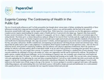 Eugenia Cooney: The Controversy of Health in the Public Eye. (2023, Oct 16). Retrieved from https://hub.papersowl.com/examples/eugenia-cooney-the-controversy-of-health-in-the-public-eye/
