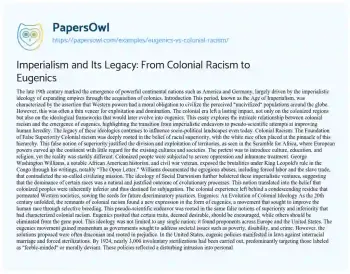 Imperialism and Its Legacy: From Colonial Racism to Eugenics. (2019, Nov 05). Retrieved from https://hub.papersowl.com/examples/eugenics-vs-colonial-racism/
