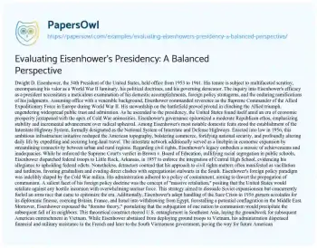 Evaluating Eisenhower's Presidency: A Balanced Perspective. (2024, May 21). Retrieved from https://hub.papersowl.com/examples/evaluating-eisenhowers-presidency-a-balanced-perspective/