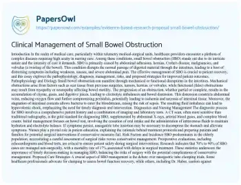 Clinical Management of Small Bowel Obstruction. (2022, Jun 29). Retrieved from https://hub.papersowl.com/examples/evidence-based-research-proposal-small-bowel-obstruction/