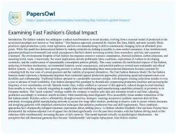 Examining Fast Fashion's Global Impact. (2025, May 28). Retrieved from https://hub.papersowl.com/examples/examining-fast-fashions-global-impact/