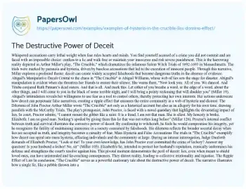 The Destructive Power of Deceit. (2023, Aug 08). Retrieved from https://hub.papersowl.com/examples/examples-of-hysteria-in-the-crucible-lies-domino-effect/