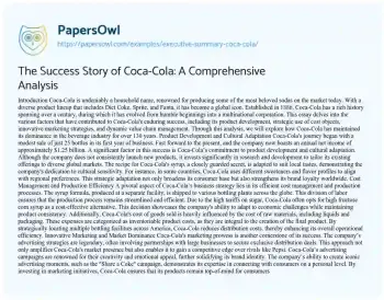 The Success Story of Coca-Cola: A Comprehensive Analysis. (2019, Jul 01). Retrieved from https://hub.papersowl.com/examples/executive-summary-coca-cola/