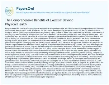 The Comprehensive Benefits of Exercise: Beyond Physical Health. (2021, Aug 04). Retrieved from https://hub.papersowl.com/examples/exercise-benefits-for-physical-and-mental-health/