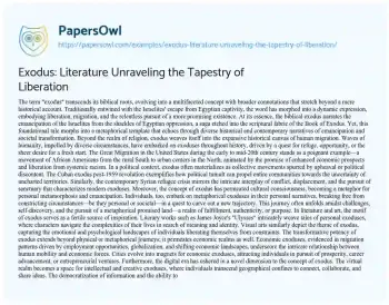 Exodus: Literature Unraveling the Tapestry of Liberation. (2024, Jan 26). Retrieved from https://hub.papersowl.com/examples/exodus-literature-unraveling-the-tapestry-of-liberation/