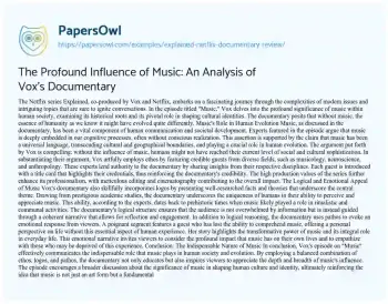 The Profound Influence of Music: An Analysis of Vox's Documentary. (2022, Jun 24). Retrieved from https://hub.papersowl.com/examples/explained-netflix-documentary-review/