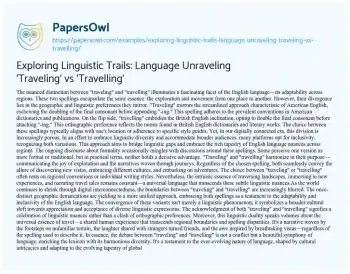 Exploring Linguistic Trails: Language Unraveling 'Traveling' vs 'Travelling'. (2023, Dec 28). Retrieved from https://hub.papersowl.com/examples/exploring-linguistic-trails-language-unraveling-traveling-vs-travelling/