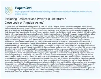 Exploring Resilience and Poverty in Literature: A Close Look at ‘Angela’s Ashes’