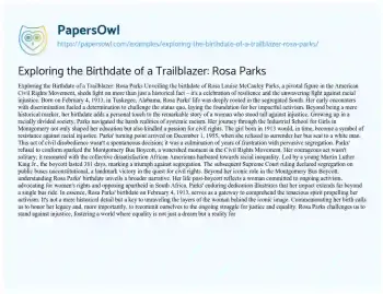 Exploring the Birthdate of a Trailblazer: Rosa Parks. (2024, Feb 01). Retrieved from https://hub.papersowl.com/examples/exploring-the-birthdate-of-a-trailblazer-rosa-parks/