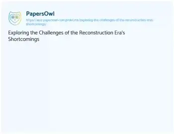 Exploring the Challenges of the Reconstruction Era's Shortcomings. (2024, Mar 01). Retrieved from https://hub.papersowl.com/examples/exploring-the-challenges-of-the-reconstruction-eras-shortcomings/