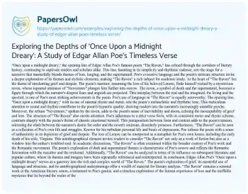 Exploring the Depths of 'Once Upon a Midnight Dreary': A Study of Edgar Allan Poe's Timeless Verse. (2023, Dec 01). Retrieved from https://hub.papersowl.com/examples/exploring-the-depths-of-once-upon-a-midnight-dreary-a-study-of-edgar-allan-poes-timeless-verse/