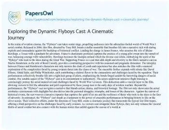 Exploring the Dynamic Flyboys Cast: A Cinematic Journey. (2024, Mar 02). Retrieved from https://hub.papersowl.com/examples/exploring-the-dynamic-flyboys-cast-a-cinematic-journey/