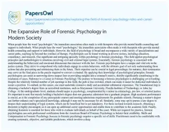 The Expansive Role of Forensic Psychology in Modern Society. (2023, Mar 28). Retrieved from https://hub.papersowl.com/examples/exploring-the-field-of-forensic-psychology-roles-and-career-opportunities/