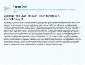Exploring "The Giver" Through Rotten Tomatoes: A Cinematic Insight. (2024, Jul 06). Retrieved from https://hub.papersowl.com/examples/exploring-the-giver-through-rotten-tomatoes-a-cinematic-insight/