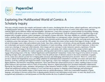 Exploring the Multifaceted World of Comics: A Scholarly Inquiry. (2024, Mar 02). Retrieved from https://hub.papersowl.com/examples/exploring-the-multifaceted-world-of-comics-a-scholarly-inquiry/