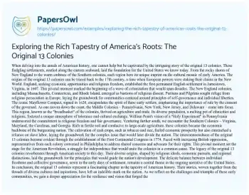 Exploring the Rich Tapestry of America's Roots: The Original 13 Colonies. (2024, Jan 26). Retrieved from https://hub.papersowl.com/examples/exploring-the-rich-tapestry-of-americas-roots-the-original-13-colonies/