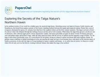 Exploring the Secrets of the Taiga: Nature's Northern Haven. (2024, Feb 01). Retrieved from https://hub.papersowl.com/examples/exploring-the-secrets-of-the-taiga-natures-northern-haven/