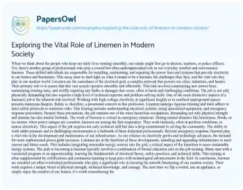 Exploring the Vital Role of Linemen in Modern Society. (2023, Dec 01). Retrieved from https://hub.papersowl.com/examples/exploring-the-vital-role-of-linemen-in-modern-society/