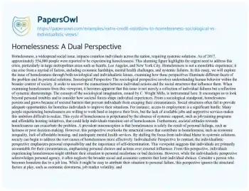Homelessness: A Dual Perspective. (2020, Feb 29). Retrieved from https://hub.papersowl.com/examples/extra-credit-solutions-to-homelessness-sociological-vs-individualistic-views/