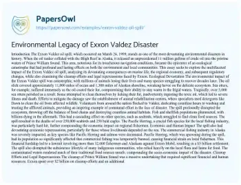 Environmental Legacy of Exxon Valdez Disaster. (2020, May 15). Retrieved from https://hub.papersowl.com/examples/exxon-valdez-oil-spill/