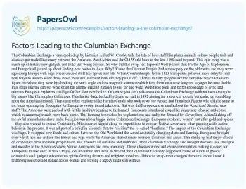 Factors Leading to the Columbian Exchange. (2024, Jul 06). Retrieved from https://hub.papersowl.com/examples/factors-leading-to-the-columbian-exchange/