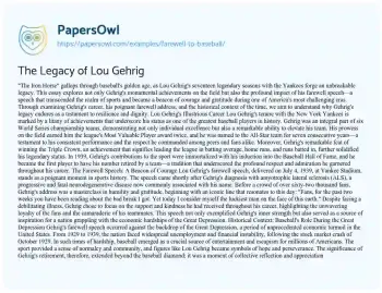The Legacy of Lou Gehrig. (2019, Apr 02). Retrieved from https://hub.papersowl.com/examples/farewell-to-baseball/