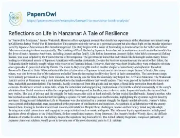 Reflections on Life in Manzanar: A Tale of Resilience. (2021, Mar 27). Retrieved from https://hub.papersowl.com/examples/farewell-to-manzanar-book-analysis/
